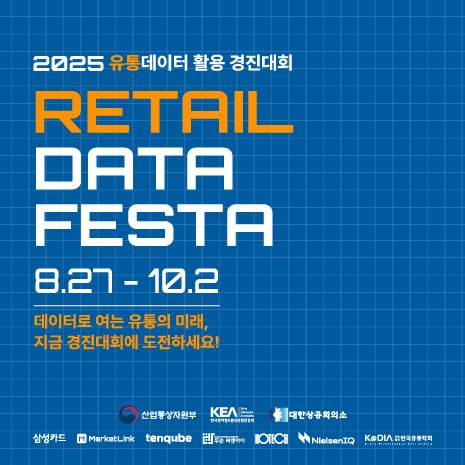 컨텐츠 정보 목록 마감 2025 유통데이터 활용 경진대회 31 0 본문 한국전자정보통신산업진흥회 기업형태 비영리단체/협회/재단 참여대상 대상 제한 없음 시상규모 780 만원 접수기간 시작일 2025-08-27 마감일 2025-10-02 홈페이지 https://festa.kdlc.or.kr/circulation/support/68ae9dd89230dd20edbe6969 활동혜택 상장 수여 활동분야 기획/아이디어 추가혜택 - 공유하기 홈페이지 지원 상세내용 지원서 다운로드 첨부 지원서 파일 없음 담당자 정보 담당자 한국전자정보통신산업진흥회 연락처 이메일 댓글 0 등록된 댓글이 없습니다. 로그인한 회원만 댓글 등록이 가능합니다. 목록